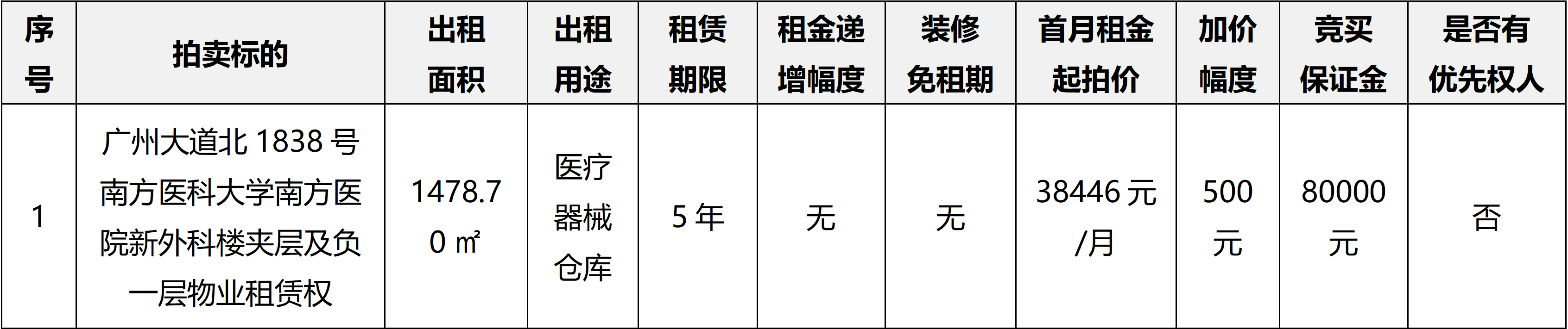 3月19日 广州大道北1838号南方医院新外科楼的物业租赁权